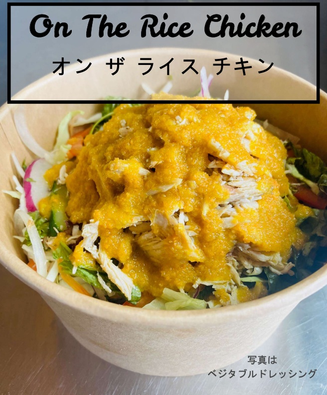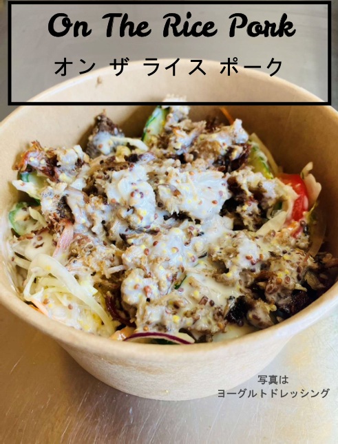 ご飯orトルティーヤの上に自家製ドレッシングを使用したサラダと燻製肉を乗せたオーバーライスorタコス。